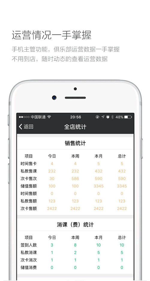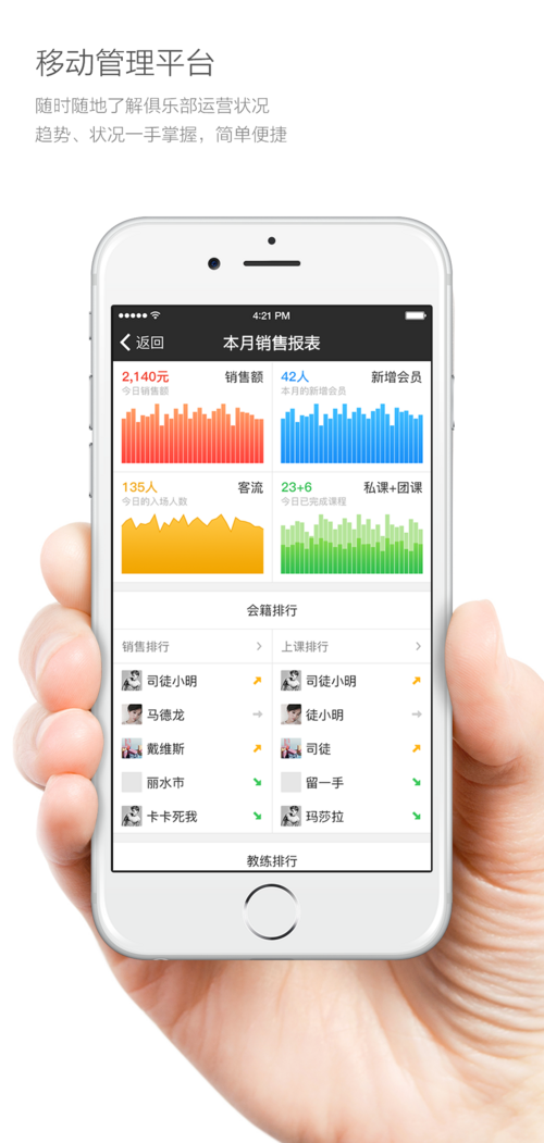 主管通过手机了解俱乐部一整天的运营状况,是由于有了管理系统的一整套管理解决方案,您可以点击以下按钮申请试用本系统,体验未来管理的魅力。